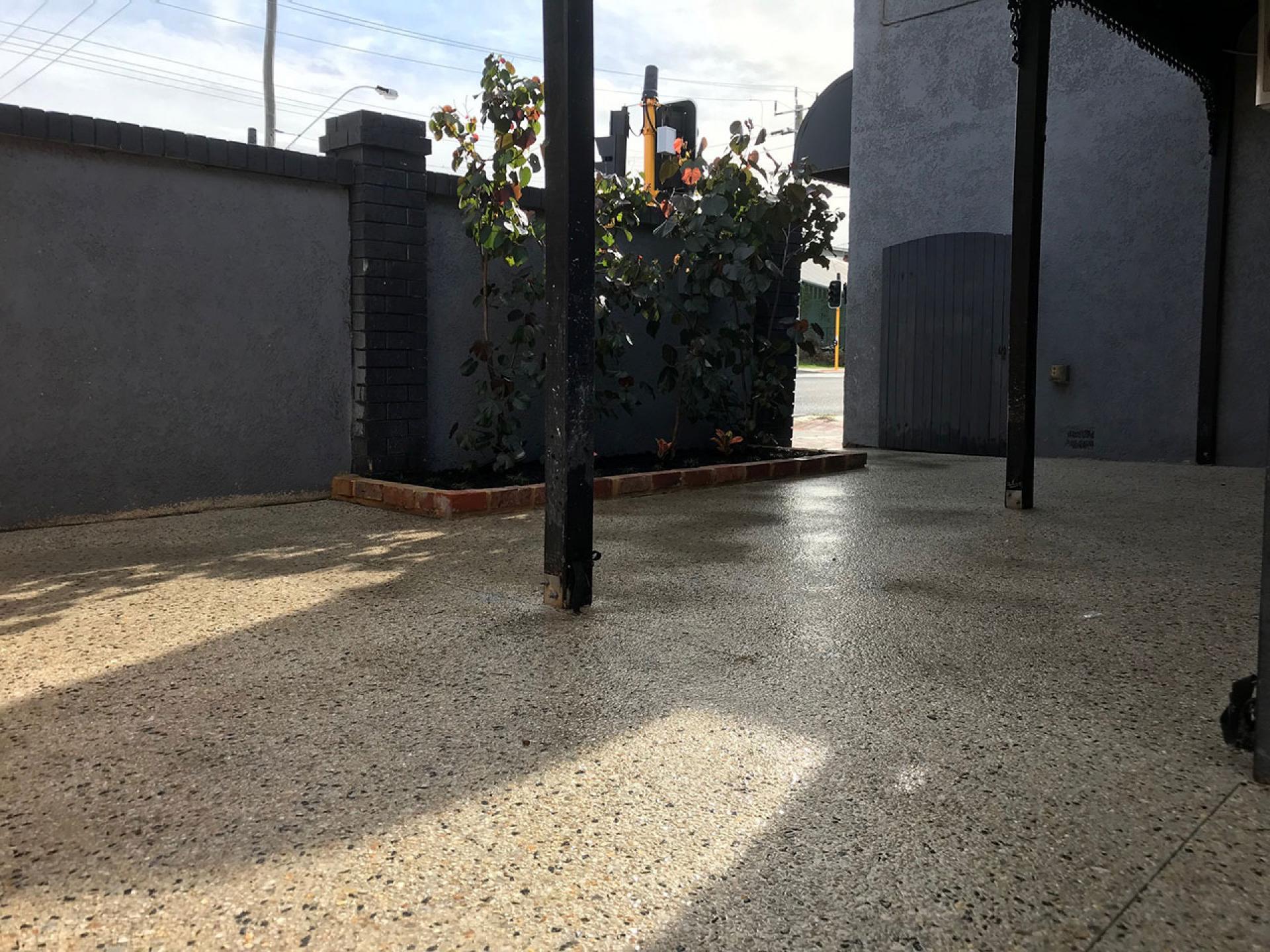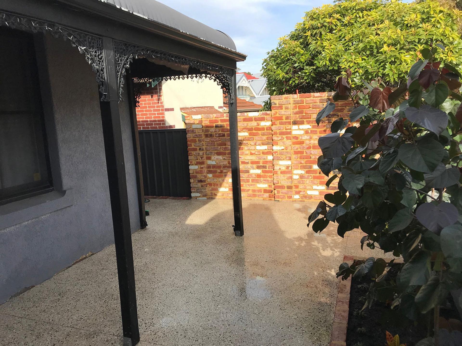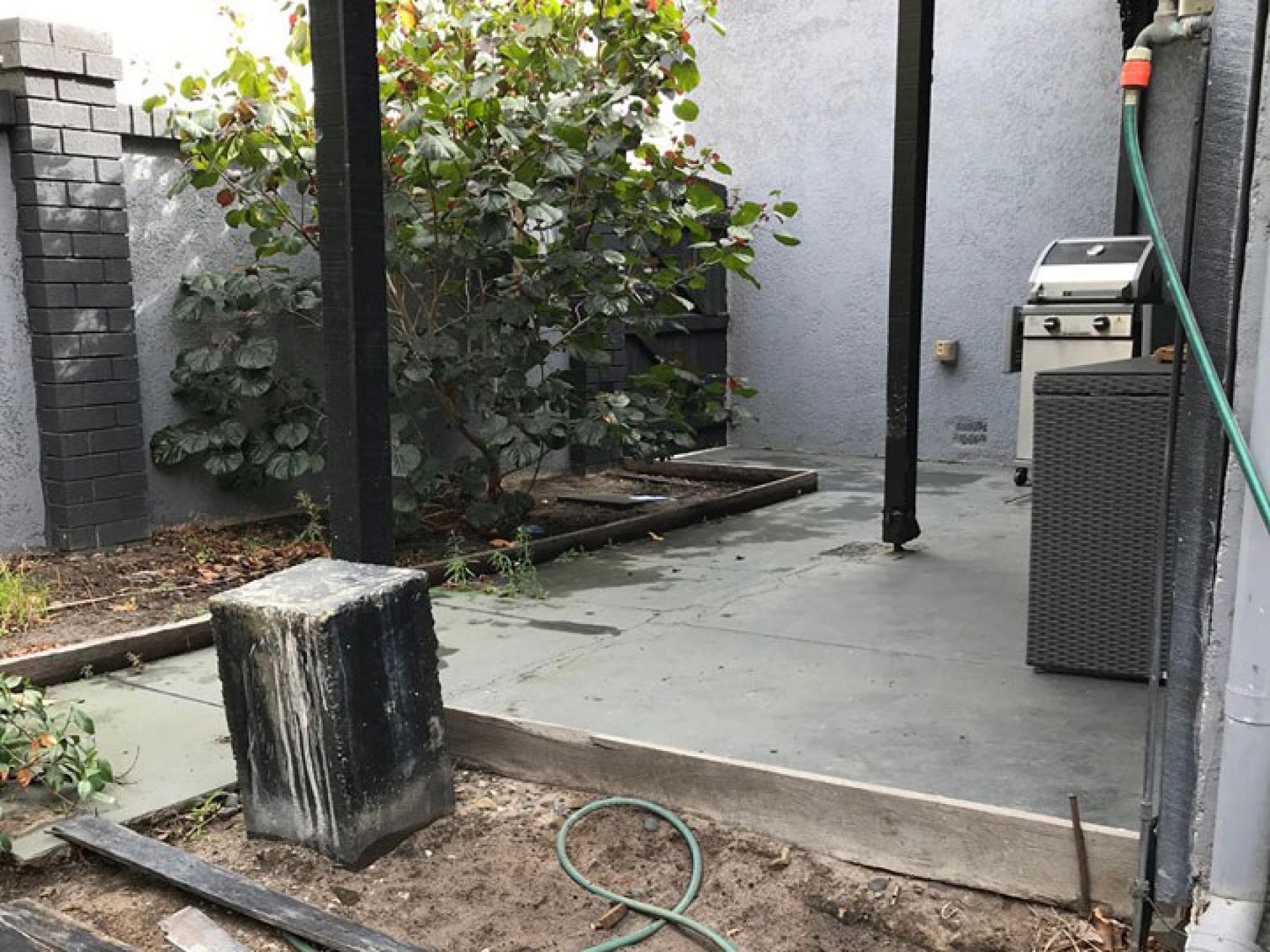 Absolute make over of an old town house in the heart of the city. The old patio concrete was cracked and very old, so it was replaced with exposed aggregate.