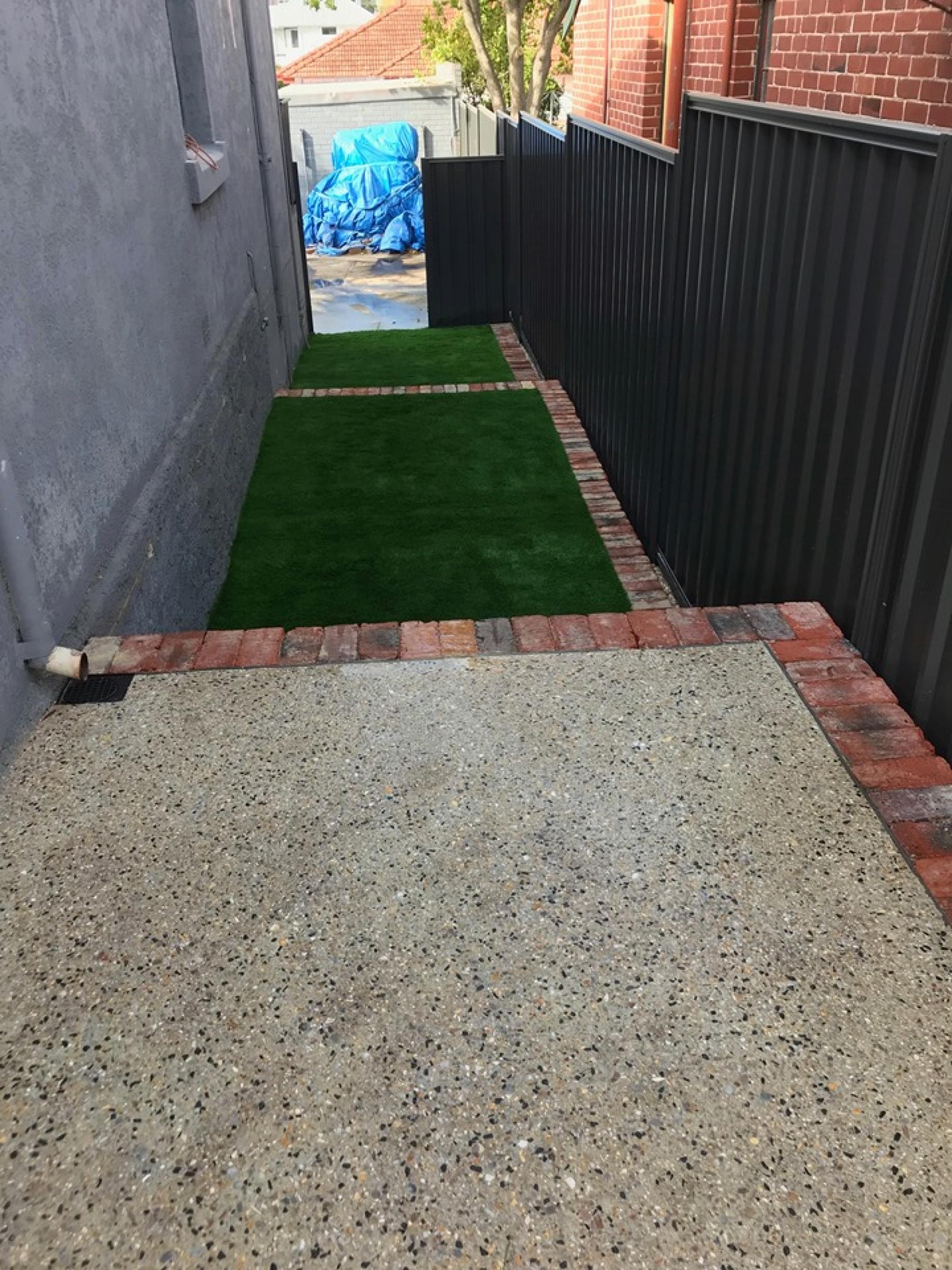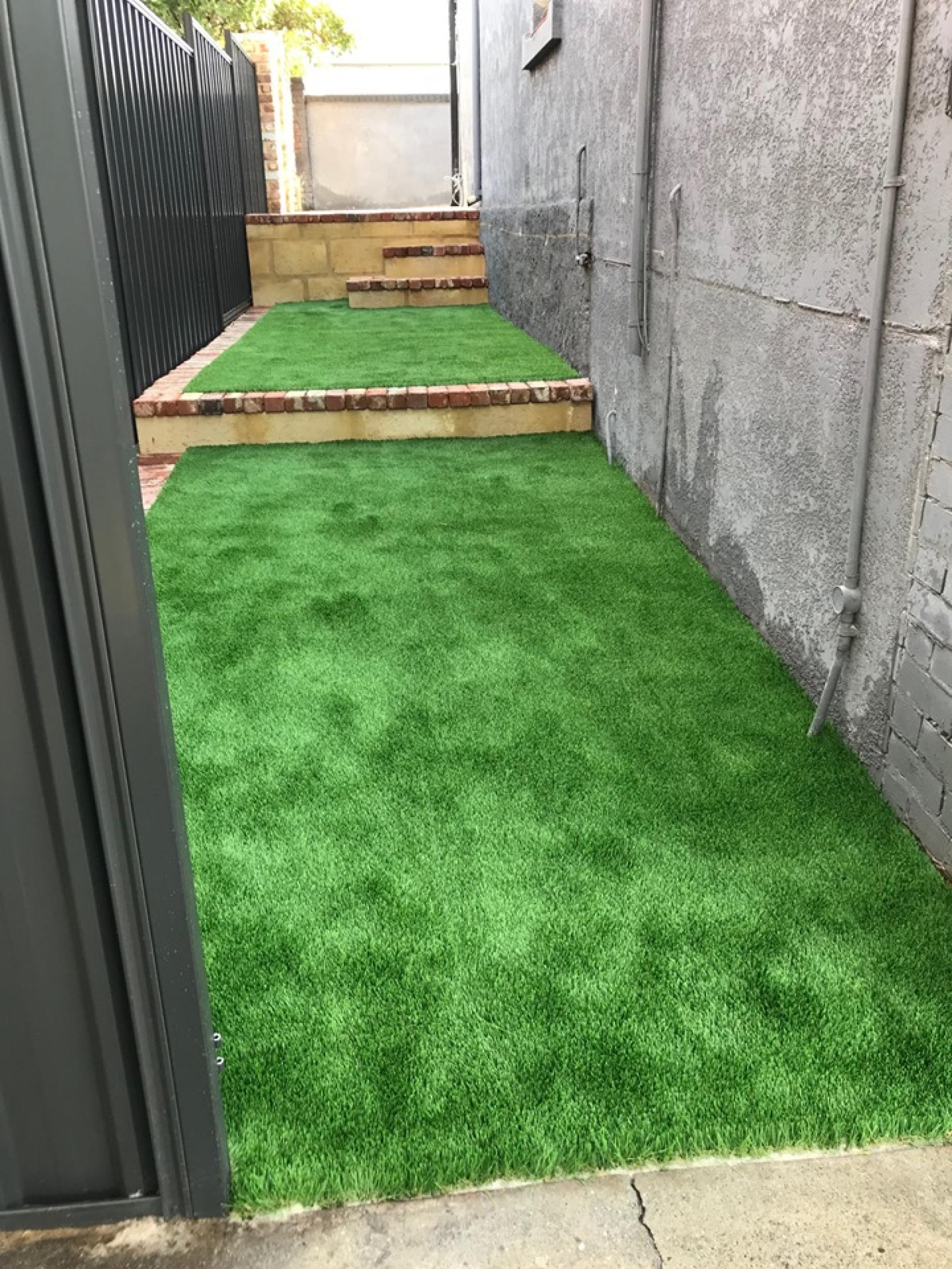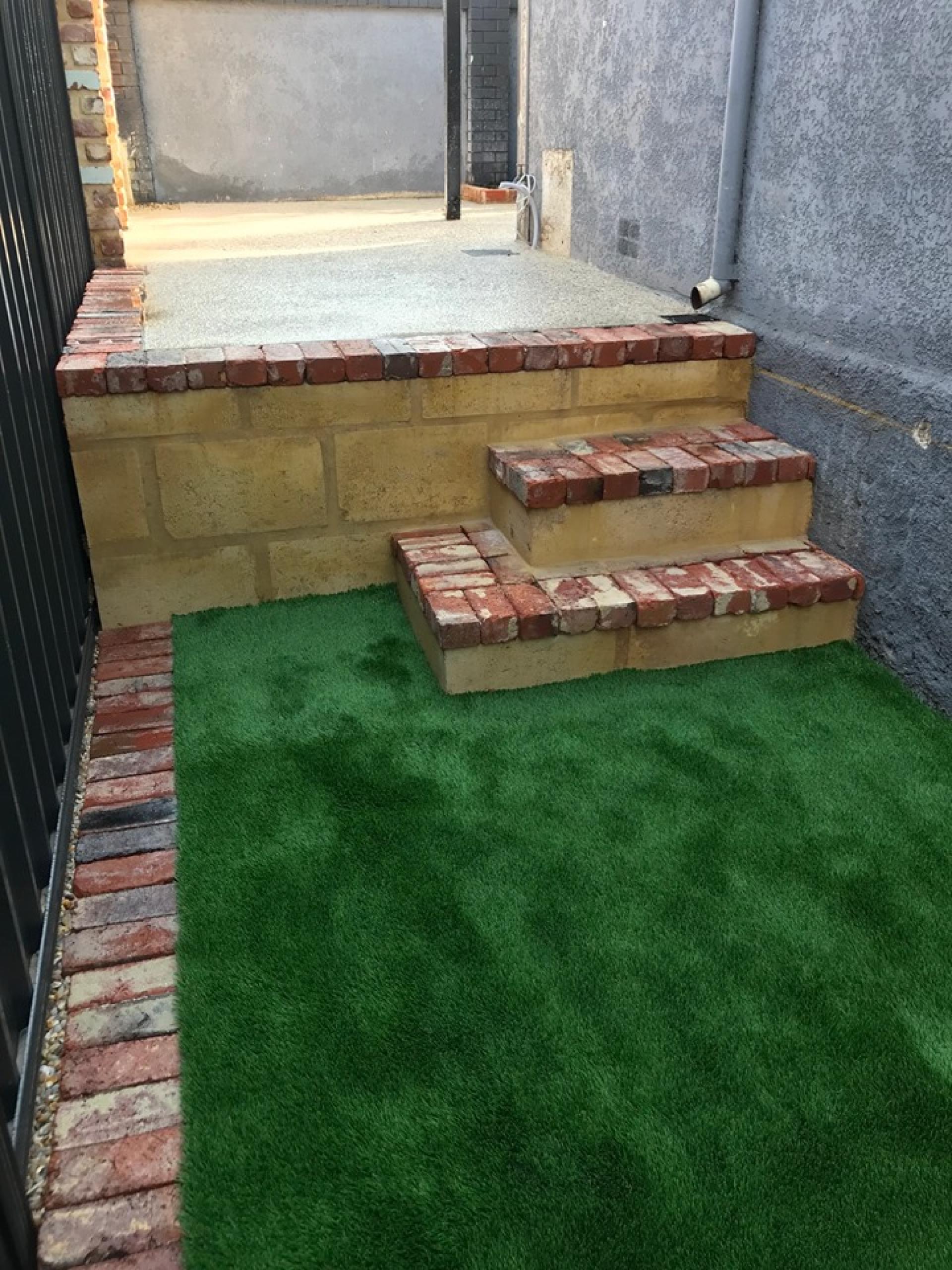 Down the side of the house we had steps down to a secondary retained area, this is added usable area as its nice & flat, We then installed a brand new product on the market 50mm thick Astro Turf., this stuff is so lush, I'll be installing to my own place.