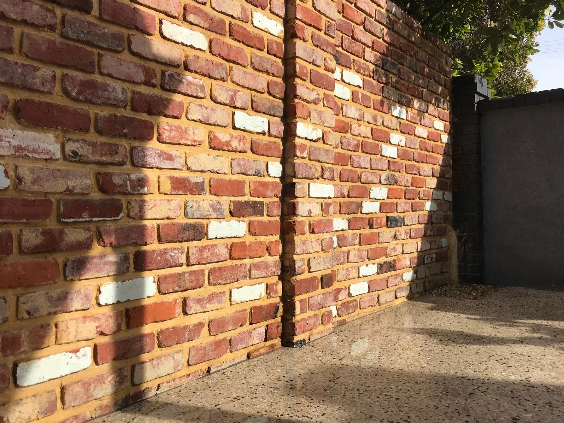 We then installed a massive recycled brick feature wall, with conduits installed for lights.