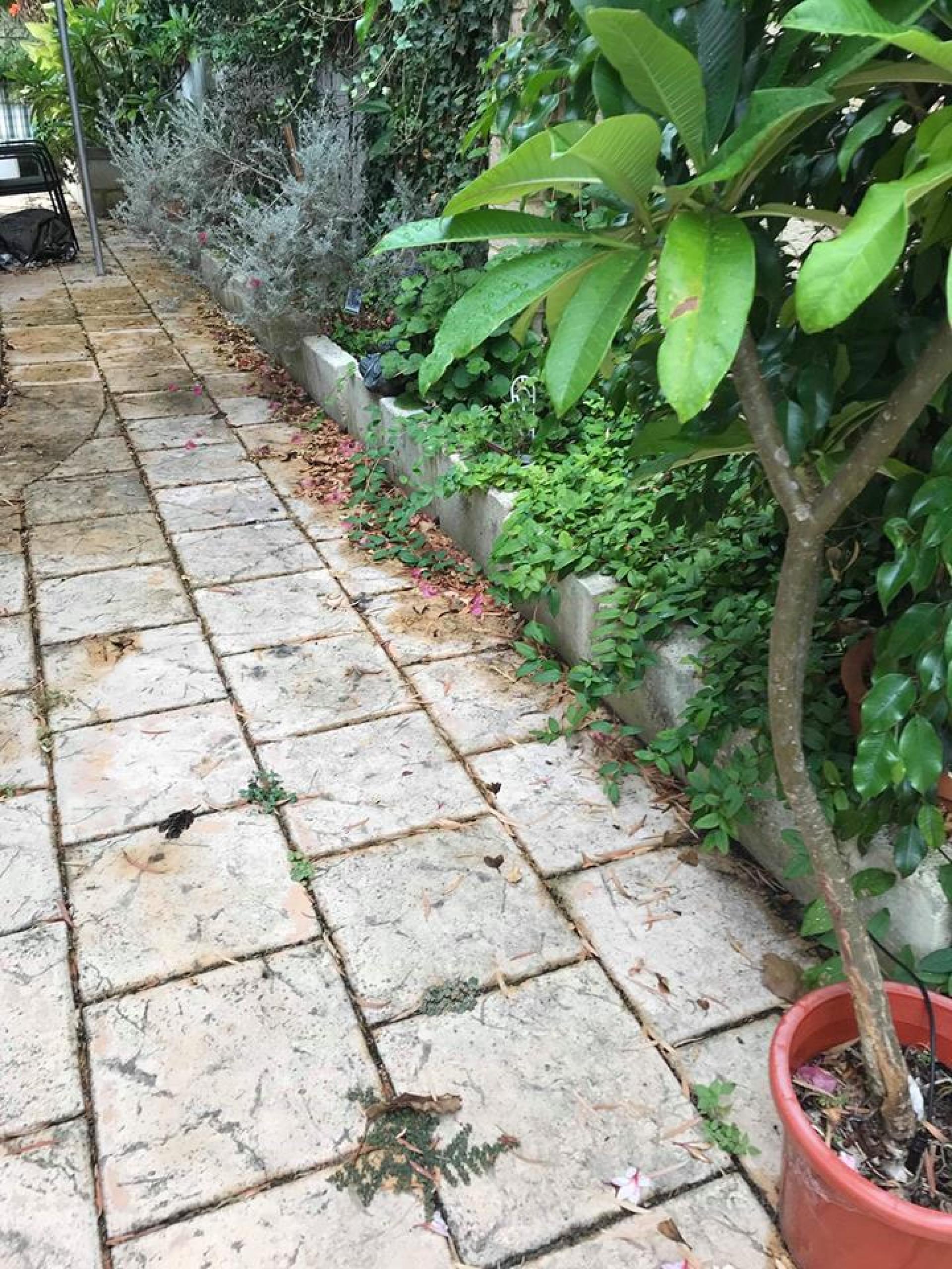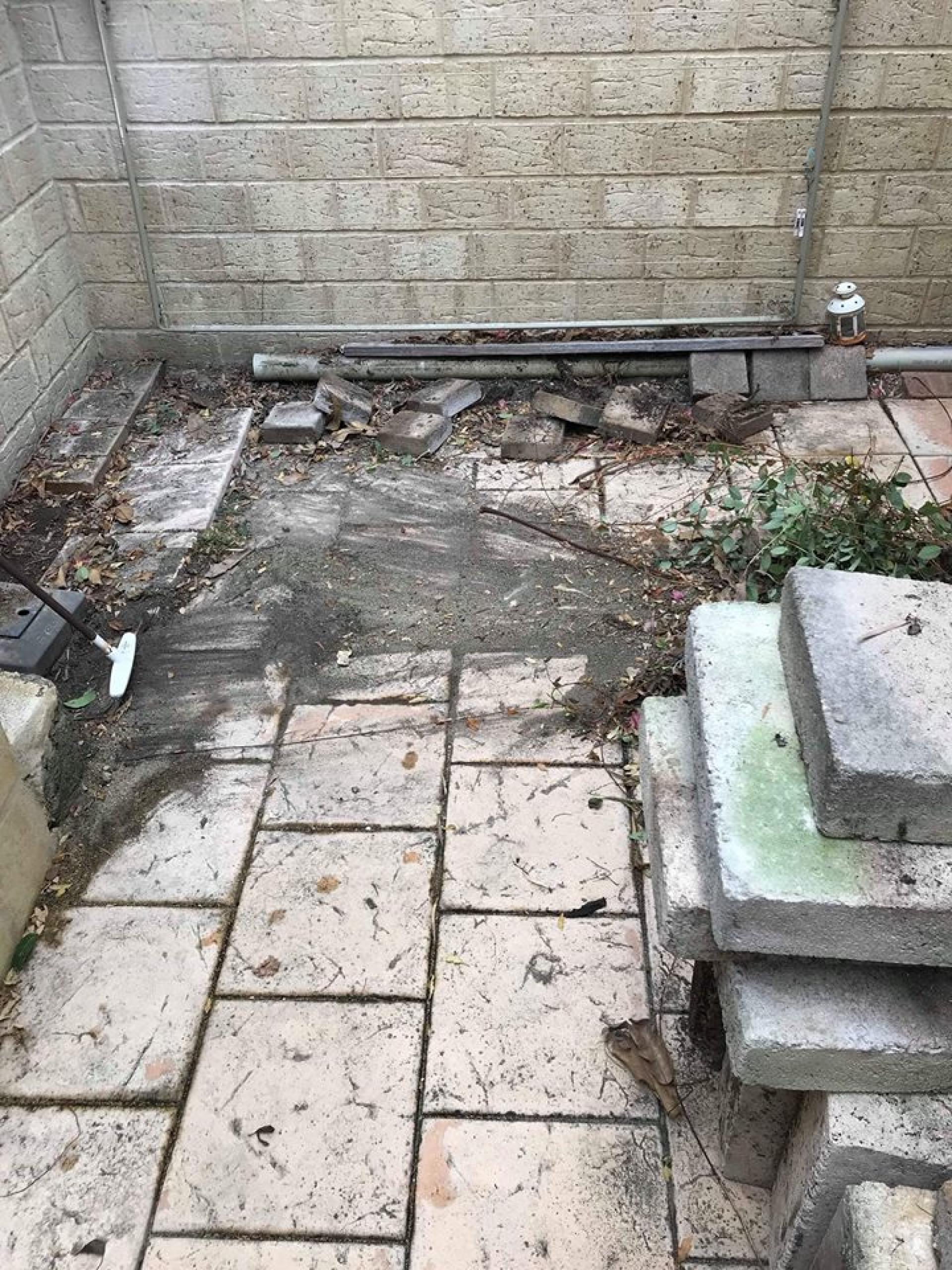 We paved down the side of the house with recycled bricks, created some limestone garden beds, and relifted the existing pavers, gave them a pressure wash and paved locked, sealed and relayed them all.